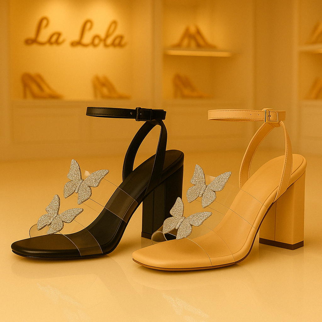 Deslumbra con la esencia femenina y poderosa de nuestros tacones Renata, un diseño que combina tiras transparentes con mariposas brillantes que parecen flotar en tus pies. Su silueta elegante, sumada al tacón grueso de 7.5 cm y plataforma sutil, brinda altura, comodidad y estilo en cada paso.