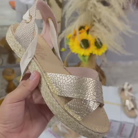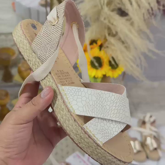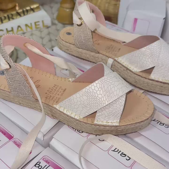 Descubre la frescura y el estilo mediterráneo con nuestras sandalias AMARANTA, diseñadas para acompañarte en los días de sol con un aire sofisticado y cómodo. Su diseño en acabado texturizado y su base en yute trenzado de lujo se combinan con un delicado lazo al tobillo, creando un look femenino y atemporal.