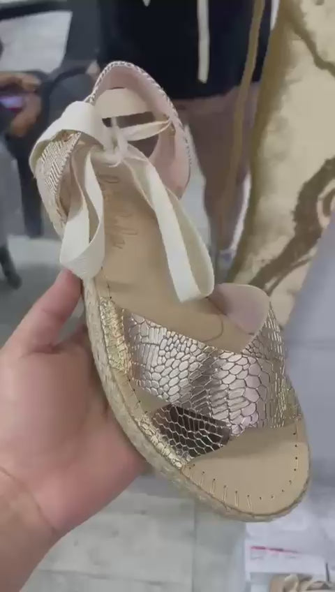 Descubre la frescura y el estilo mediterráneo con nuestras sandalias AMARANTA, diseñadas para acompañarte en los días de sol con un aire sofisticado y cómodo. Su diseño en acabado texturizado y su base en yute trenzado de lujo se combinan con un delicado lazo al tobillo, creando un look femenino y atemporal.